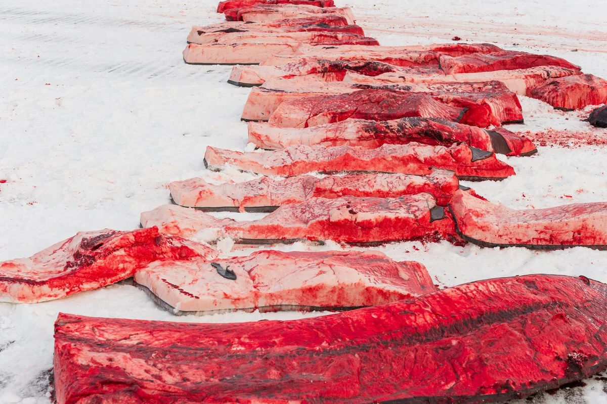 On our first day, our taxi driver who owns Polar Cab (hands down one of the friendliest and most knowledgeable locals we met) shared some news: a bowhead whale had been successfully caught, and the harvesting was happening on the beach. He asked if we’d like to see it, and before we knew it, we were driving across town toward the shoreline, with curiosity and respect.